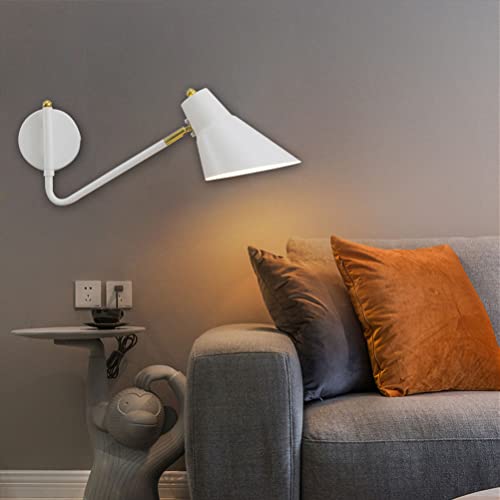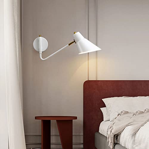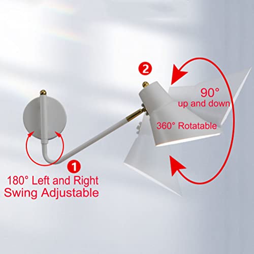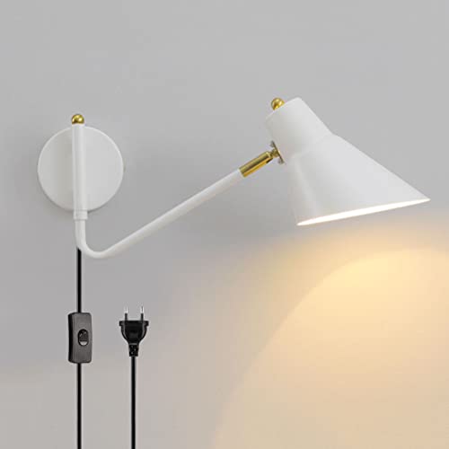 Interno Girevole Lampada da Parete con Interruttore Braccio Oscillante Regolabile Applique da Parete con spina schermo di vernice spray in metallo Lampada da lettura con cavo Lampada da comodino E27