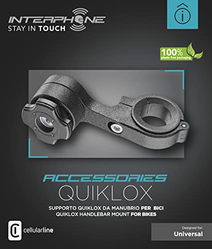 INTERPHONE- Porta Cellulare da Manubrio Bici - Supporto Compatibile con Manubri da 22 a 31,8mm - Regolabile 360° Orizzontale 90° Verticale - Sistema Modulare QUIKLOX - Aggancio Sgancio Rapido