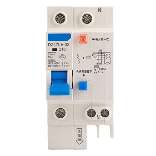 Interruttore Automatico DZ47LE-32, 1P+N 230V 10A 50Hz 4.5kA 300mA, Protezione da Sovracorrente Differenziale per Interruttore Differenziale, Interruttore per Carichi Piccoli con