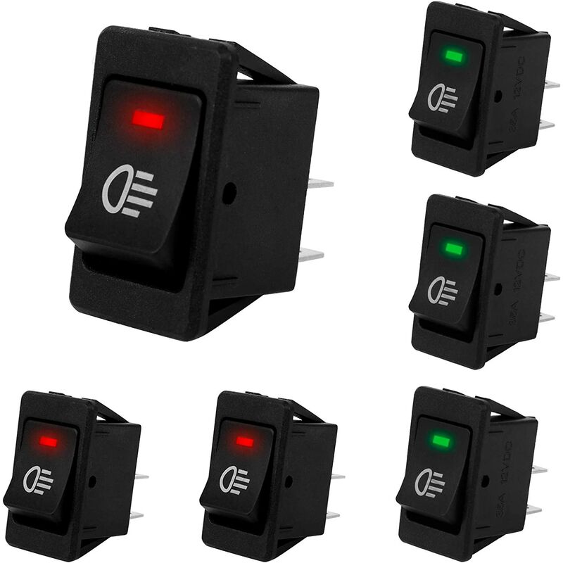 RICAMBI AUTO PRATICI: questo interruttore a bilanciere DC 12V può sostituire perfettamente l'interruttore fendinebbia vecchio o danneggiato. È un accessorio per auto indispensabile e pratico. ?? MATERIALE ROBUSTO: I nostri interruttori a bilanciere per barche sono realizzati in plastica ABS e metallo di alta qualità, che è resistente e può essere utilizzato a lungo. ?? INTERRUTTORE A BILANCIERE AUTOMOBILISTICO: l'interruttore a bilanciere a 4 pin ha una tensione nominale di 12 V e una corrente nominale di 35 A. Ha 4 pin, luminosità stabile e nessun calore. Questo è un perfetto interruttore per fendinebbia per auto. ?? FORTE COMPATIBILITÀ: il nostro interruttore per fendinebbia per auto può essere utilizzato per commutare i fendinebbia anteriori/posteriori. L'interruttore a bilanciere con indicatore LED è adatto per la maggior parte delle auto e può essere utilizzato anche per motociclette e barche. ?? COMBINAZIONE PERFETTA: un set di 6 interruttori a bilanciere LED rossi