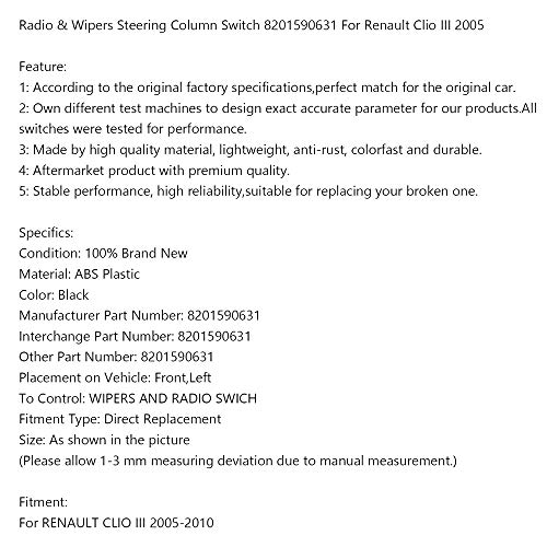 Interruttore a colonna di sterzo per radio e tergicristalli R-ENAULT C-LIO 8201590631,8201359195