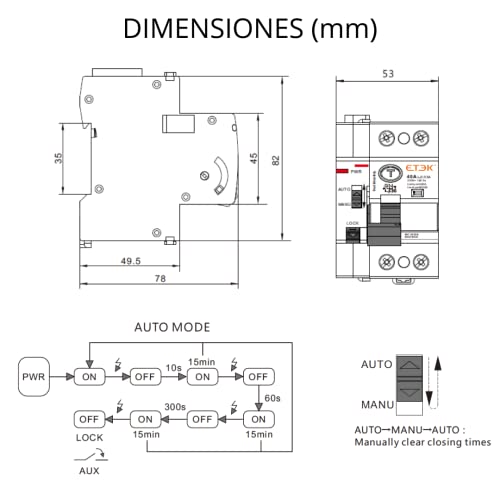 INSTALLAZIONE SEMPLICA, come qualsiasi altro differenziale del quadro luci, su corsia. Devi alimentare elettricamente l'autorearmi, devi alimentare nella ciabatta verde i morsetti L e N mettendoli in parallelo con la parte superiore del differenziale o dell'automatico generale di ingresso (collegare all'ingresso differenziale A1 e A2 del morsetto verde). Il differenziale riarmabile ha un sistema di bloccaggio con il quale è possibile scegliere il funzionamento manuale, automatico e chiuso.