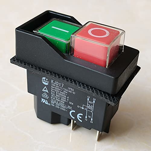 KEDU Interruttore elettromagnetico interruttori a pulsante impermeabili per macchine utensili industriali e utensili elettrici 16(12) A 250V 18A(AC-1)/15A(AC-3) 2HP 220-240V 5E4 (KJD17-4Pins-250V)