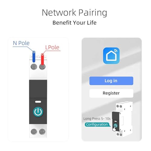 Interruttore su Guida Din Smart PA66 Materiale Ignifugo Interruttore WIFI Telecomando per Telefono Cellulare 3 Modalità di Temporizzazione per Elettrodomestici(#6)
