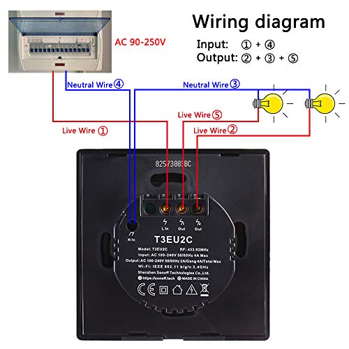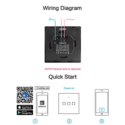 T3 Interruttore Intelligente Senza Fili Luce de Parete 1 Gang WIFI Switch Temporizzatore Supporto 433 RF Controllato compatibile con Alexa Echo, Google Home e Google Nest