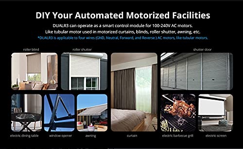 Doppio controllo bidirezionale di due dispositivi in modo indipendente: DUAL R3 supporta il collegamento con 2 dispositivi e ogni dispositivo può essere controllato con 2 interruttori aggiuntivi.adatto per persiane, porte avvolgibili, porte di garage.