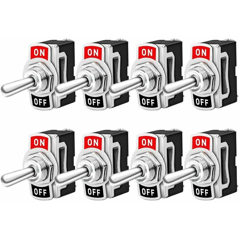 Levetta professionale ON-OFF 2 posizioni 2 pin SPST. La connessione rende l'operazione più conveniente. . Materiale di alta qualità: realizzato in plastica e metallo di alta qualità, aspetto delicato, resistente e durevole. Aspetto elegante e di fascia alta sulla tua attrezzatura. . Installazione semplice: il diametro del foro di montaggio è di 12 mm. Ciascuno dei terminali ha 2 viti metalliche per connessioni rapide, ma anche facili da saldare. . Ampia applicazione: adatto a tutti i tipi di auto e marine, come automobili, auto da corsa, camion, barche, yacht e navi. . La confezione include: 8 interruttori a bilanciere + 1 scatola di plastica. .
