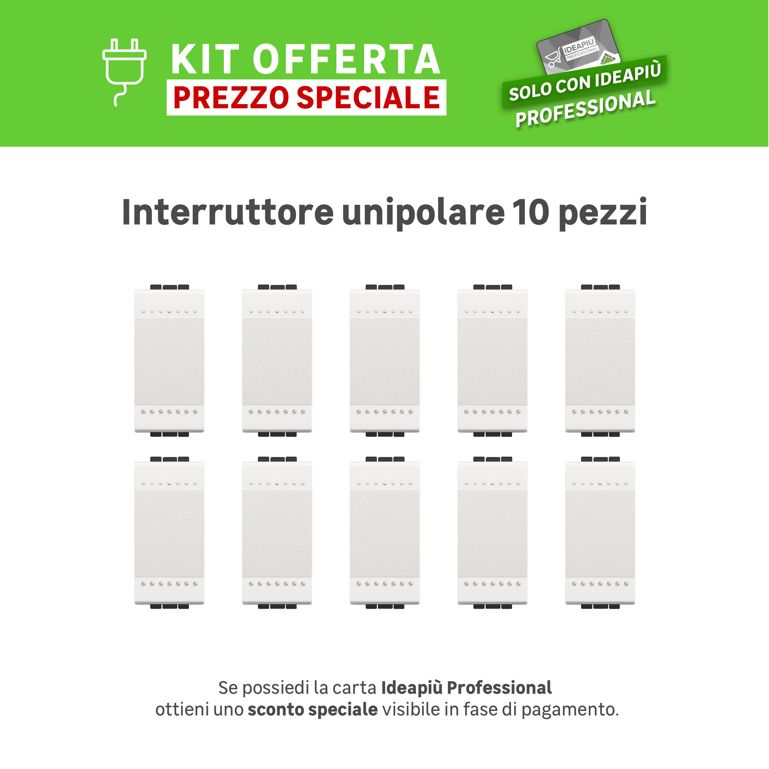 Kit da 10 pezzi interruttore serie Livinglight colore bianco. Creazione dell'impianto elettrico. Il kit da 10 unità permette di avere una scorta sempre disponibile