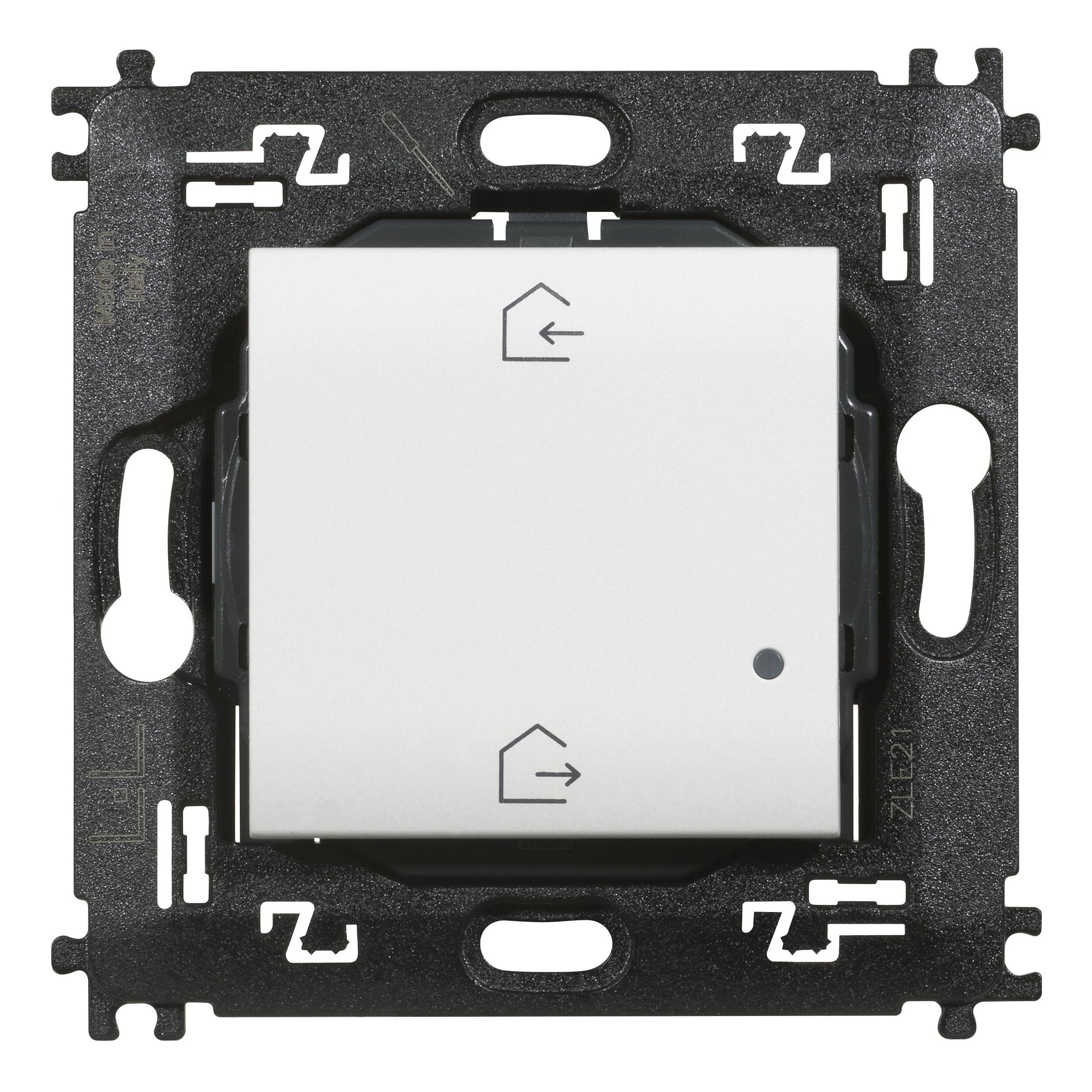 Comando scenario Entra&Esci wireless. Alimentazione a batteria 3V tipo CR2032 (fornita a corredo) con autonomia di 8 anni - 2 moduli.. Necessità di attivare e disattivare scenari ENTRA e ESCI da fuori casa. Dispositivo dotato di 2 pulsanti per l'attivazione degli scenari Entra ed Esci personalizzabili dall'app HOME + CONTROL (lo scenario Esci è pre-impostato per chiudere tutte le tapparelle e spegnere tutte le luci). Installazione superficiale con adesivi riposizionabili (forniti a corredo) o su scatole da incasso. LED integrato per la segnalazione di batteria scarica. Compatibilità con serie Livinglight. Installazione superficiale con adesivi riposizionabili (forniti a corredo) o su scatole da incasso