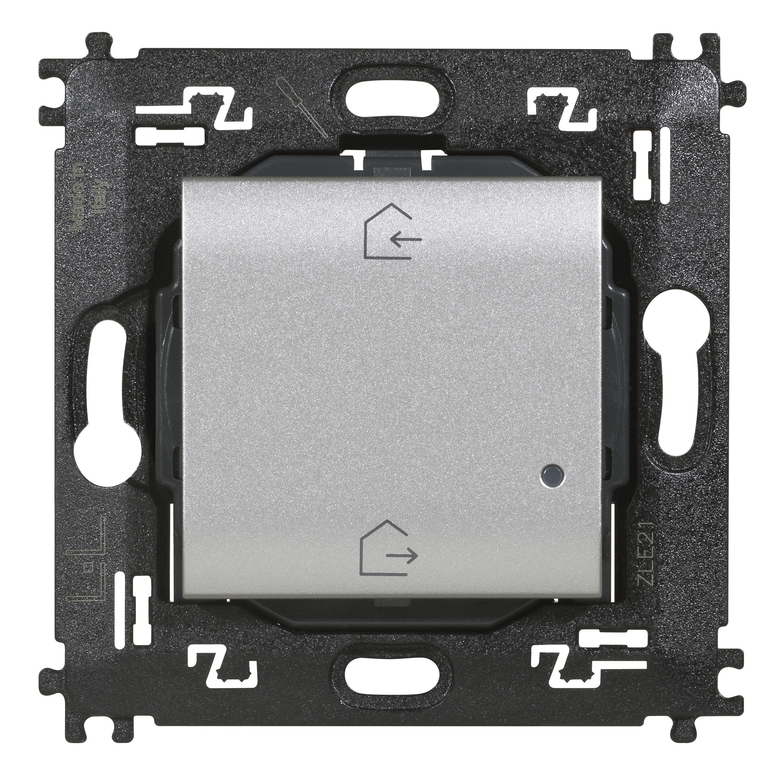 Comando scenario Entra&Esci wireless. . Alimentazione a batteria 3V tipo CR2032 (fornita a corredo) con autonomia di 8 anni - 2 moduli.. Necessità di attivare e disattivare scenari ENTRA e ESCI da fuori casa. Dispositivo dotato di 2 pulsanti per l'attivazione degli scenari Entra ed Esci personalizzabili dall'app HOME + CONTROL (lo scenario Esci è pre-impostato per chiudere tutte le tapparelle e spegnere tutte le luci). Installazione superficiale con adesivi riposizionabili (forniti a corredo) o su scatole da incasso. LED integrato per la segnalazione di batteria scarica. Compatibilità con serie Livinglight. Installazione superficiale con adesivi riposizionabili (forniti a corredo) o su scatole da incasso