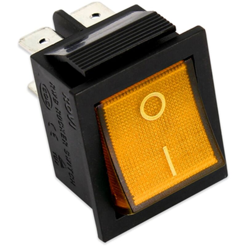 Interruttore bipolare luminoso 250V 16A 4 faston 22X30 mm di colore gialloDimensioni 22 x 30 mm4 contattiPOSIZIONI 0 - I
