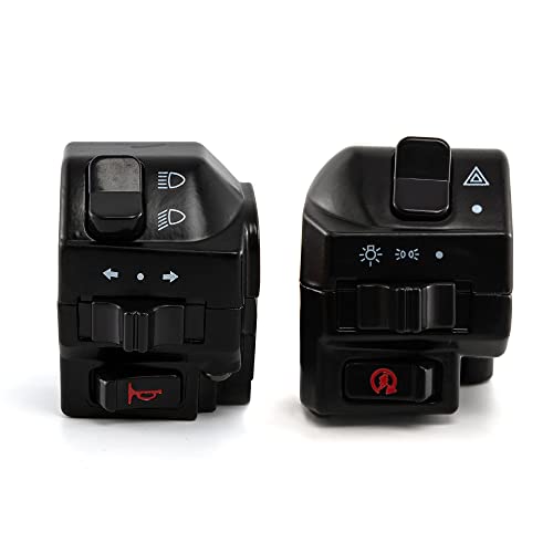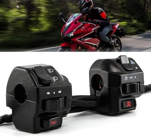 【Materiale】: questo interruttore della maniglia della motocicletta è realizzato in plastica di alta qualità, durevole e resistente alle intemperie. Non facile da danneggiare, qualità affidabile e lunga durata. [Funzione]: interruttore anabbaglianti/abbaglianti, interruttore clacson, interruttore luci indicatori di direzione, interruttore di avviamento elettrico, interruttore accensione/spegnimento fari, interruttore spia, interruttore spegnimento fiamma