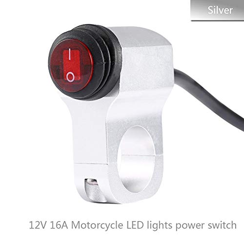 Interruttore manubrio moto, 12V Interruttore manubrio impermeabile moto 7/8 "faro fendinebbia Interruttore on off interruttore, lega di alluminio (argento)