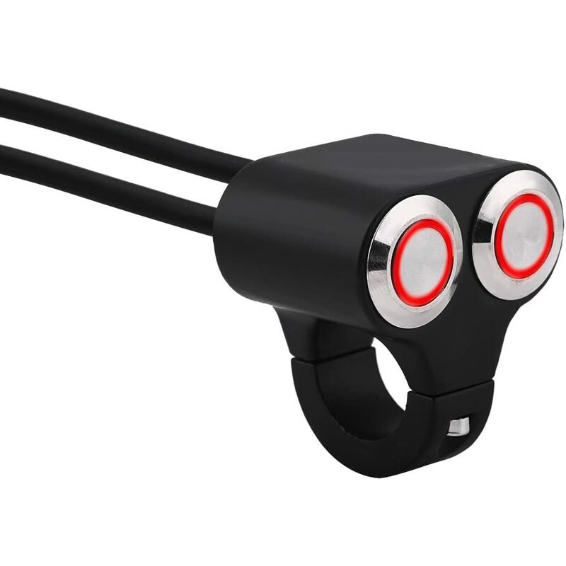 Il pulsante di ripristino manuale può essere utilizzato per l'illuminazione generale, gli avvisi, i fendinebbia e la base per i dispositivi mobili. Il pulsante di ritorno automatico può essere utilizzato come clacson, pulsante di accensione e pulsante di avvio/arresto. Realizzato in lega di alluminio: resistente alle intemperie e molto durevole. Display LED multicolore, per offrirti una nuova esperienza visiva. Vestibilità universale per moto con 7 /8 manubri di diametro (22 mm). Si prega di notare che a causa della misurazione manuale e delle differenze di visualizzazione, potrebbero esserci lievi differenze tra i singoli prodotti e le foto.