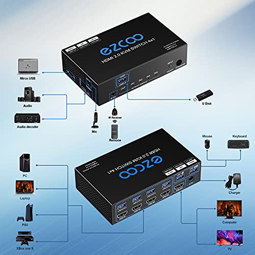 controlla facilmente 4 sorgenti HDMI con una tastiera USB. Supporta interruttori, telecomando a infrarossi, CEC/Bluetooth, tastiera wireless, mouse / tastiera meccanica da gioco. Compatibile con ABW. Supporta console PC, aggiornamento firmware e 33 opzioni EDID.