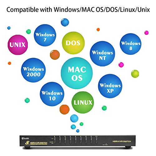 8 porte KVM HDMI Switcher. Una console USB o PS/2 controlla 8 HDMI-interfaccia computer. Supporto interruttore a pulsante, interruttore del tasto di scelta rapida e scansione automatica con intervallo preimpostato