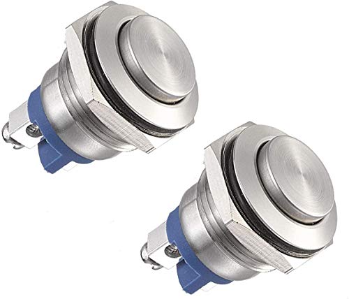 Interruttore a pressione Momentaner, 16 mm, in metallo, interruttore a pulsante a clacson, interruttore di alimentazione PC, 2 poli a vite (2 pezzi, testa alta)