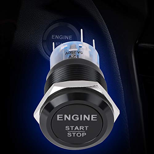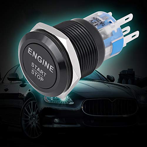 Interruttore a pulsante di arresto di emergenza, interruttore a pulsante a LED di accensione motore a LED bianco 12V(Nero)