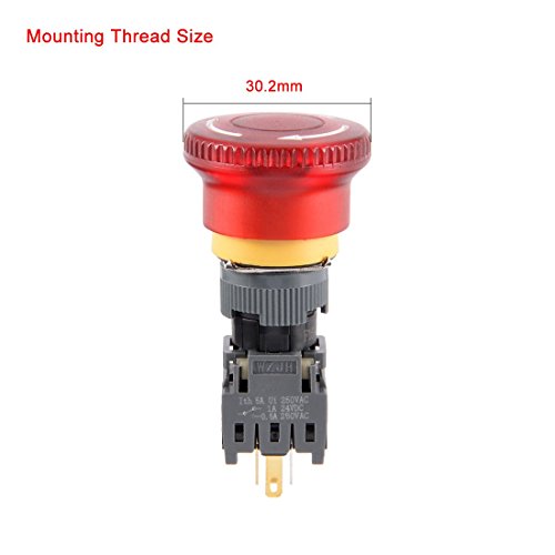 Interruttore a pulsante di arresto di emergenza bloccabile con luce rossa 24 VDC AC 250 V 0,5 A 16 mm Dia SPDT 1NO 1NC 4P Testa di fungo
