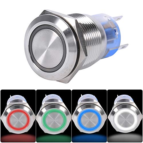 Interruttore a pulsante autobloccante a 12 V LED, 19 mm Interruttore a pulsante autobloccante in acciaio inossidabile impermeabile 1NO1NC(Bianco) (1 pezzi)