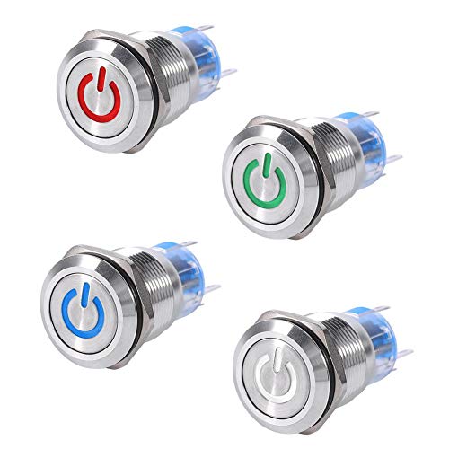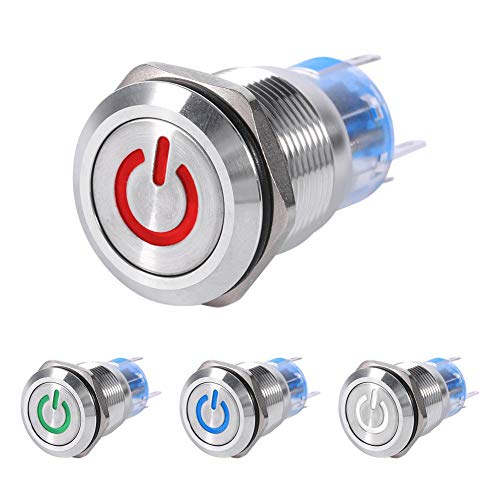 Interruttore della luce LED: Interruttore a pulsante luce LED 19mm è costruito sul proprio circuito, acceso quando acceso o potrebbe essere cablato per renderlo illuminato alternato. Adottare l'anello di gomma e il dado esagonale fisso, anti polvere e impermeabile, che lo rendono ideale per l'uso all'aperto
