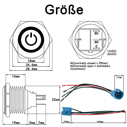 LUCE LED: la luce LED con tensione 12V-24V è indipendente dal circuito dell'interruttore a chiave. Può essere costantemente acceso o controllato dall'interruttore, che dipende dalle modalità di cablaggio. Puoi scegliere un tipo di connessione secondo il tuo desiderio.
