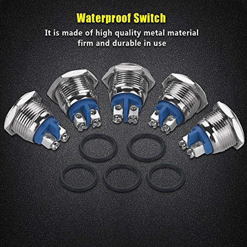 Interruttore a pulsante, 250 V 16 mm, in ottone placcato, micro impermeabile, interruttore a pulsante in metallo con passacavo, per apparecchi elettrici, relè, circuiti (Testa piatta)