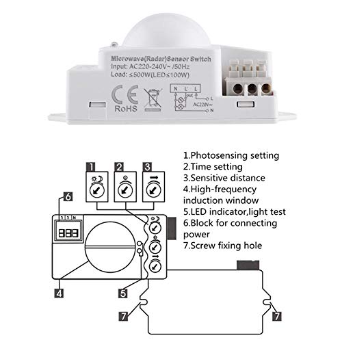Interruttore luce radar Interruttore luce microonde a 360 gradi Rilevatore movimento radar 500W
