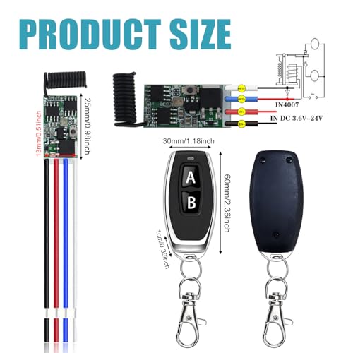 Ampia applicazione: questo mini interruttore wireless per relè è utilizzato principalmente per luci di Natale, motore, controller remoto, allarme di sicurezza wireless, industria di sicurezza e altri campi. È possibile controllare da remoto qualsiasi dispositivo collegato al modulo ricevitore tramite il telecomando.