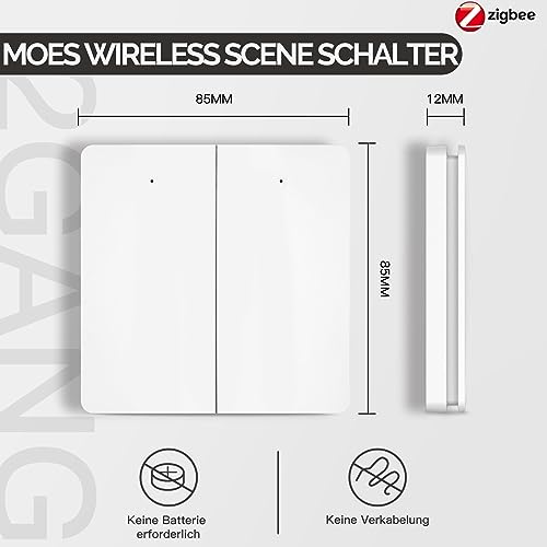 MOES Interruttore di Scena ZigBee Smart Wireless Autoalimentato, Senza Batterie e Cavi, Durata di Vita 100.000 Volte, Richiede MOES ZigBee Hub, 2 Pulsanti