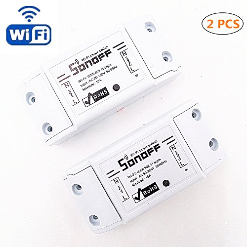 Interruttore senza fili, HEANTTV 2 pezzi sonoff switch temporizzatore remoto-controllato da wifi per lampada/ventilatore elettrico/elettrodomestico, interruttore intelligente per casa fai da te da iPhone Android (singolo canale)