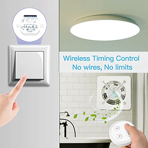 Interruttore Luce Senza Fili, LoraTap Interruttore Telecomando con Timer 10min/30min Wireless On/Off Switch Funziona in Parallelo con Interruttore Originale, Modulo Relè 10A per Lampada