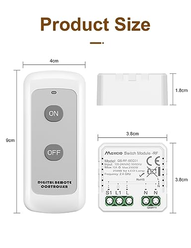 Interruttore Luce Senza Fili, Maxcio Interruttore di Sicurezza Trasmettitore RF e Controller Ricevitore 10A, Adatto per lampade/portalampada
