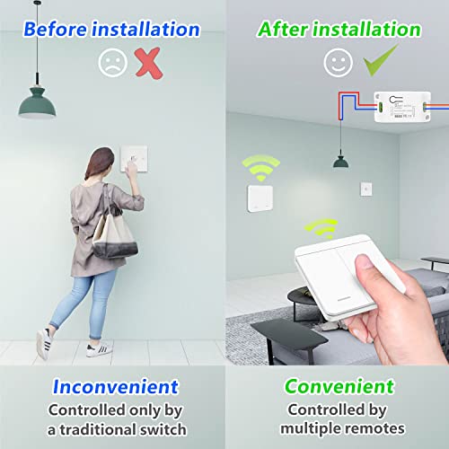 ◤Utilizzo flessibile e risparmio di denaro◥: 20 interruttori possono controllare 1 ricevitore. È sufficiente installare il ricevitore tra il dispositivo (il dispositivo che deve essere controllato) e l'alimentatore (è necessario il filo neutro). Può essere utilizzato per ristrutturare una casa o sostituire un interruttore esistente senza rimuovere muri e posare cavi.