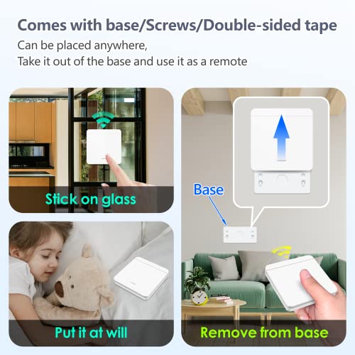 ◤Controllo in qualsiasi luogo◥: l'interruttore a parete può essere separato dalla base dell'interruttore a parete. Il pacchetto è dotato di nastro biadesivo e viti. È possibile utilizzare nastro biadesivo o con viti per fissare la base del pannello a parete su superfici in vetro oa parete o frigorifero, ecc.
