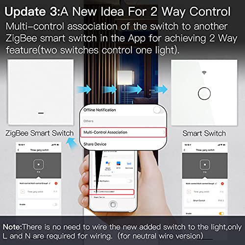 MOES interruttore smart ZigBee, e senza cavo neutro, non richiede condensatore, Smart Life Tuya app controllo da remoto, compatibile con Alexa Google Home, richiede Hub Zigbee Tuya, 1 Gang, bianco