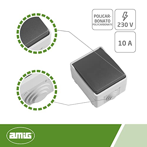 Amig 3611 - Interruttore stagno incrociato ip54 10 a 230 V grigio
