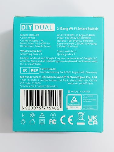Interruttore Tapparella Collegato, SONOFF DUALR3 2 Gang 2 Way Interruttore Collegato WiFi Smart Switch con Monitoraggio Energia, Modalità del motore, Compatibile con Alexa/Google Home/Siri, (2-Pack)