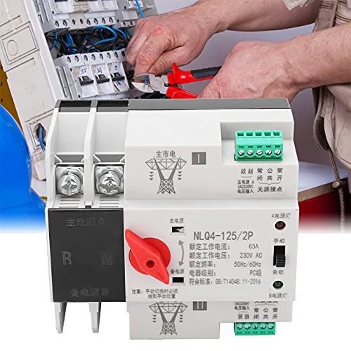 Interruttore di Trasferimento Automatico Montato su Guida DIN ATS Mini ATS 2P Interruttori Selettori Elettrici di Continuità 230V(63A)