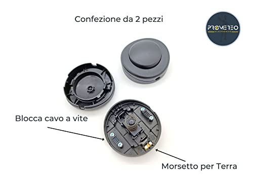 Set 2 Interruttori a pedale nero rotondo per piantane e lumi - 250V - 2A - Diametro 65mm