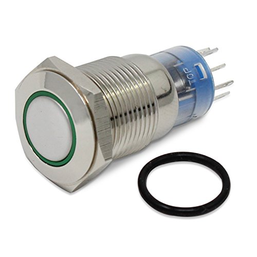 Interruttori PsmGoods 16 millimetri LED verde metallo 12V 3A rotonda Momentary Pushbutton