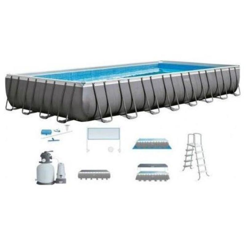 Intex 26378np piscina fuori terra ultra xtr frame rettangolare pompa filtro 10000 l-h scaletta telo base e copertura kit pulizia deluxe e set volley 54368l acciaio e pvc grigio 975x488x132cm