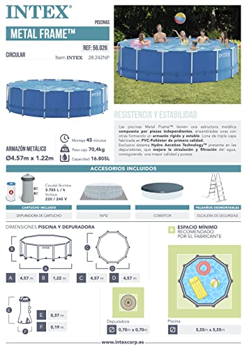 Intex 28236 Metal Frame Piscina Fuoriterra Rotonda, 457 x 122 cm