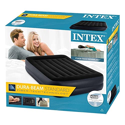 Intex 64122 Materasso Classic Durabeam Pillow Rest Singolo con Tecnologia Fiber Tech Pompa 341, PVC-Poliestere, Blu, 99 x 191 x 42 cm