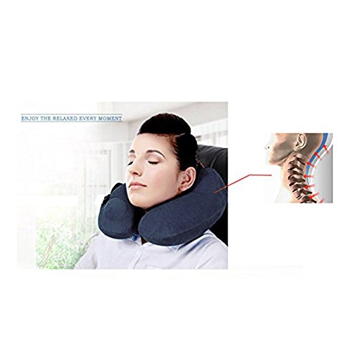 Intima WM Cuore Collo - Cuscino Morbido Cuscino Gonfiabile da Viaggio per Dormire in Auto, Aereo, Treno E Bus Blu Scuro