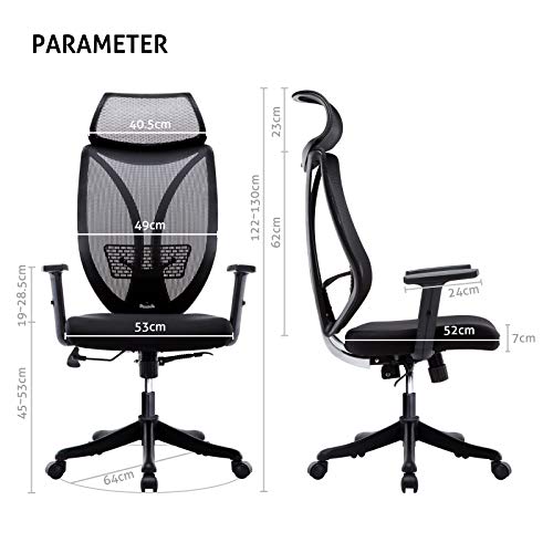 il supporto lombare regolabile assicura che la vita dell'utente si appoggi nella posizione ottimale. Il materiale in rete di alta qualità combina comfort e traspirabilità, non si deformi dopo un uso prolungato