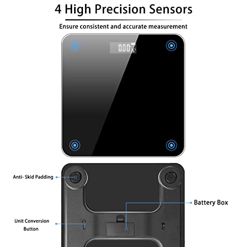 Intirilife Bilancia pesapersone ultrasottile Bilancia pesapersone in Nero con base 26 x 26 cm e display digitale - Per una pesatura rapida e accurata del peso corporeo o di oggetti