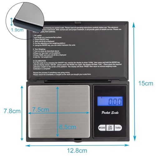 FUNZIONE: la bilancia è dotata di una funzione di tara per determinare il peso netto, un'impostazione per 6 diverse unità di peso e una funzione di spegnimento automatico (60 sec).
