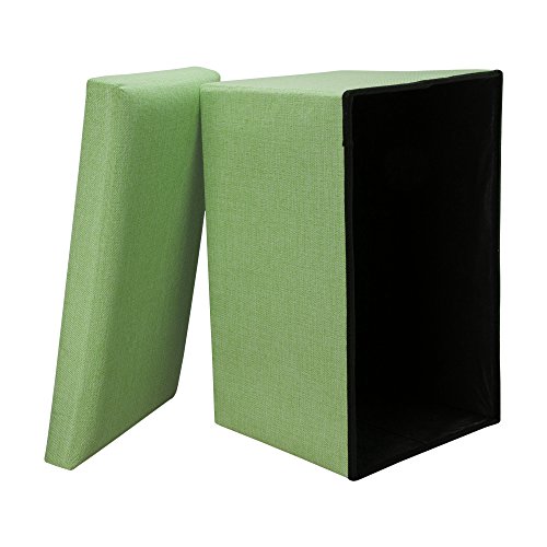 INTIRILIFE Pouf Pieghevole 78 x 38 x 38 cm in Verde Primavera - Cassapanca Cubo Contenitore Imbottito de Tessuto a l'Ottica Lino con Coperchio - Ottomane Poggapiedi Sgabello Panca Poltrona