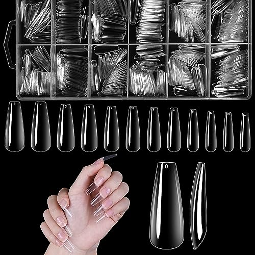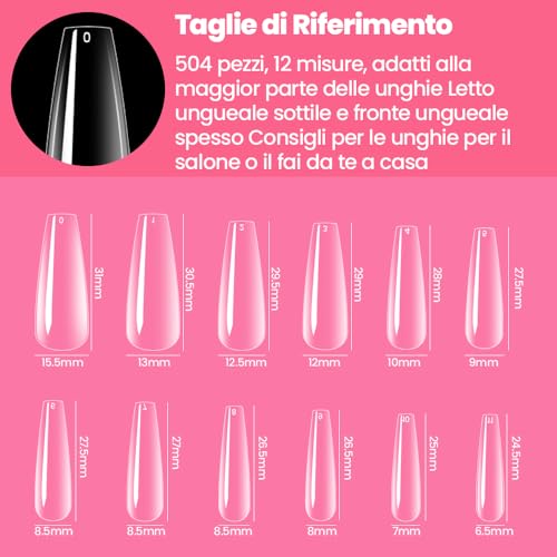 INTOBAS 504Pcs Tips Unghie Finte in Gel da Ballerina, Trasparenti,12 Taglie Full Cover Tips Copertura Completa, Unghie Capsule per Saloni di Manicure